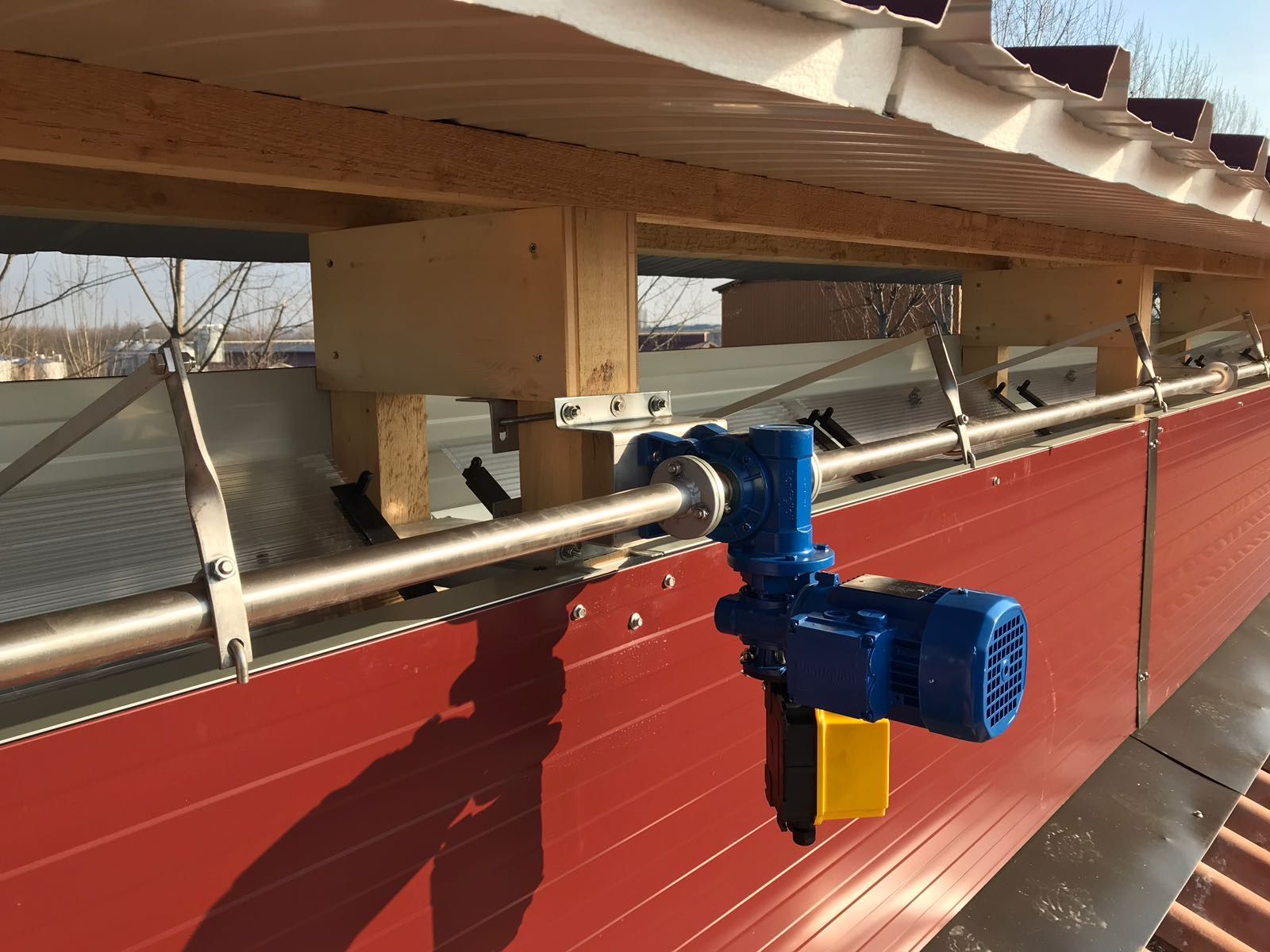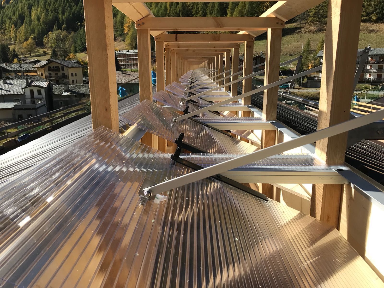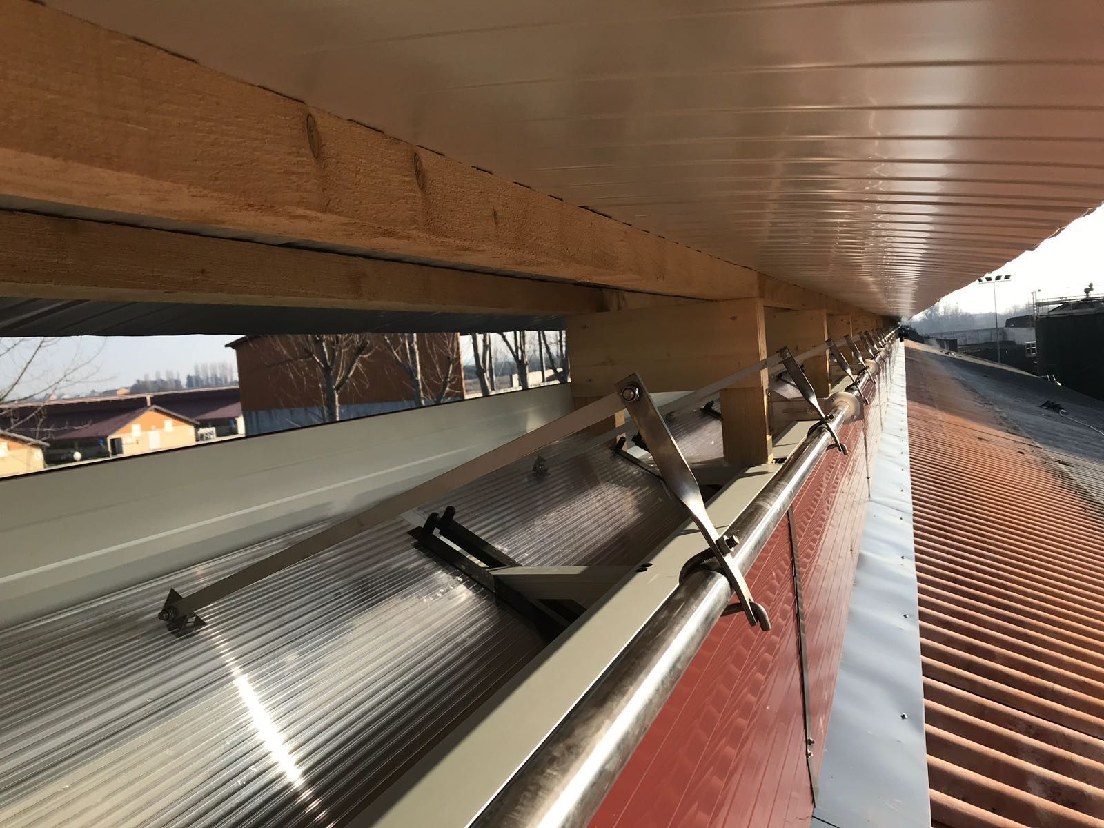 - Sistema di apertura con tubo in acciaio inox AISI 304 e lamella in policarbonato alveolare