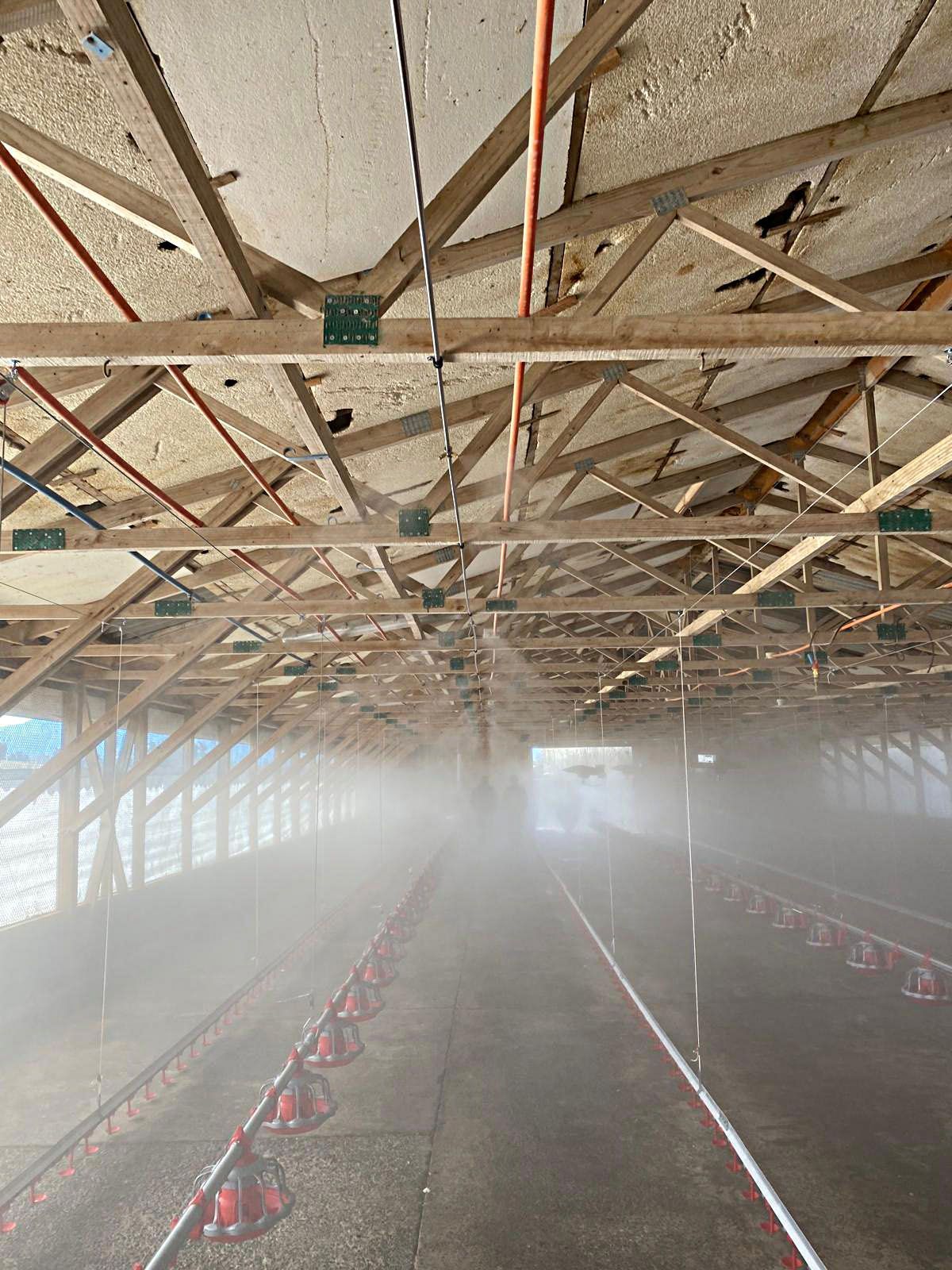 Il sistema Fogger CGM utilizza ugelli ad alta pressione per generare una nebbia sottile che evapora rapidamente, sottraendo calore all’ambiente. È una soluzione di raffrescamento ad alta efficacia, progettata per abbassare la temperatura in modo rapido e uniforme senza bagnare superfici o animali.